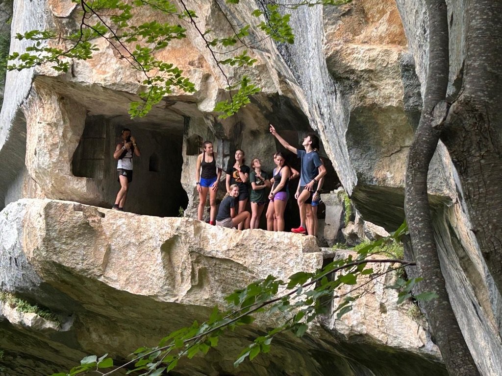 Exploring Eremo San Giovanni, a small hermitage built into the cliff. This refuge was inhabited by Pietro da Morrone, the future Pope Celestine V for nearly nine years.